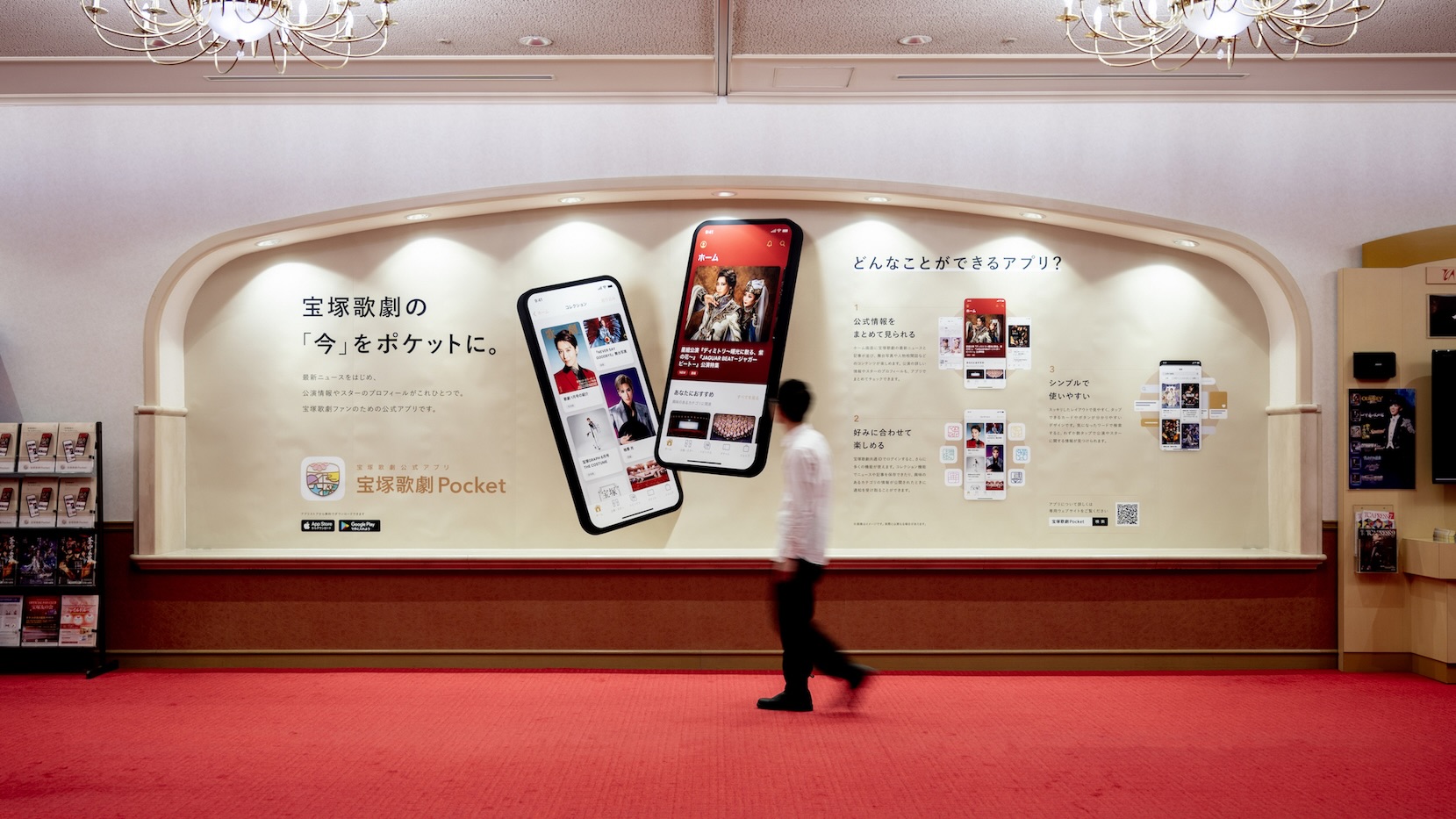 宝塚大劇場のホワイエに設置した宝塚歌劇Pocketの大型看板