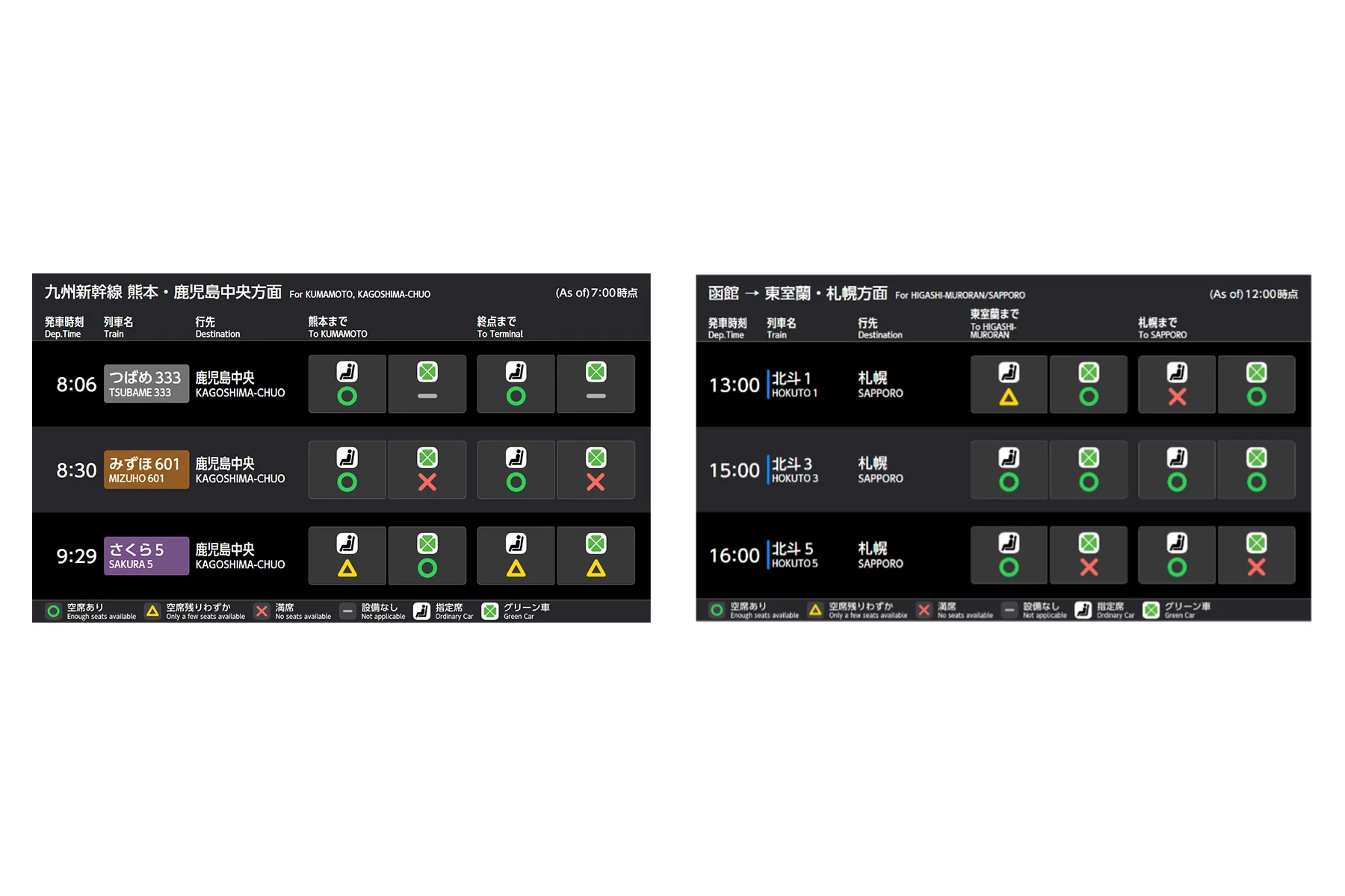 切符を購入する前に空席状況を確認するための端末